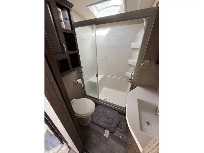 The private sleeping quarters promise restful nights, with a cozy bedroom that offers ample storage and comfort. The bathroom is spacious and elegant, featuring modern amenities that make it feel more like a spa retreat. From its durable build to its stylish interior finishes, the Forest River Cedar Creek Silverback 31IK is more than just an RV; it's your gateway to unforgettable adventures. Secure this prime model today and discover why life is better living on the road in your own personal getaway.