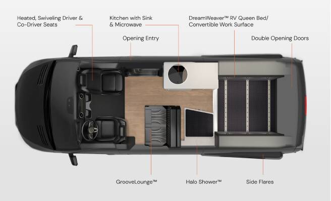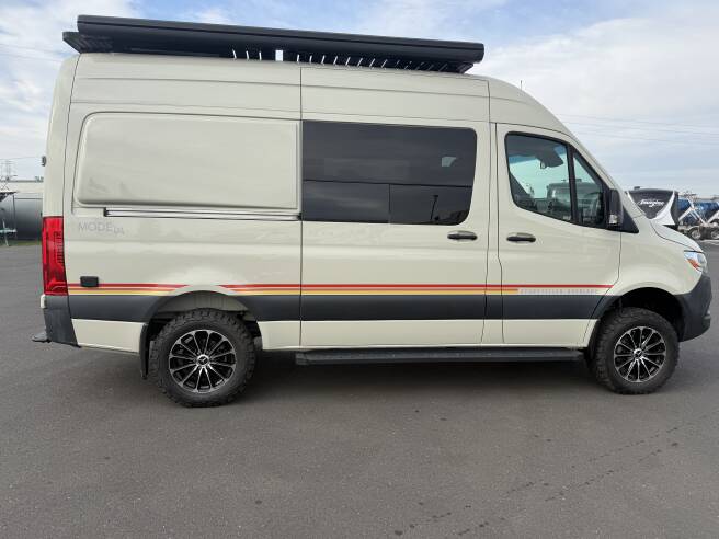 Inside, the MODE 4X4 boasts an intelligent layout that maximizes space, allowing you to enjoy every moment of your adventure. Its chic, minimalist interior is fitted with practical amenities, including a cozy sleeping area, a fully-equipped kitchenette, and a toasty shower setup, ensuring that you never have to compromise on comfort, wherever the road may lead you. The comprehensive storage solutions mean you can pack all your essentials and more, whether you’re planning a weekend getaway or an extended cross-country expedition.